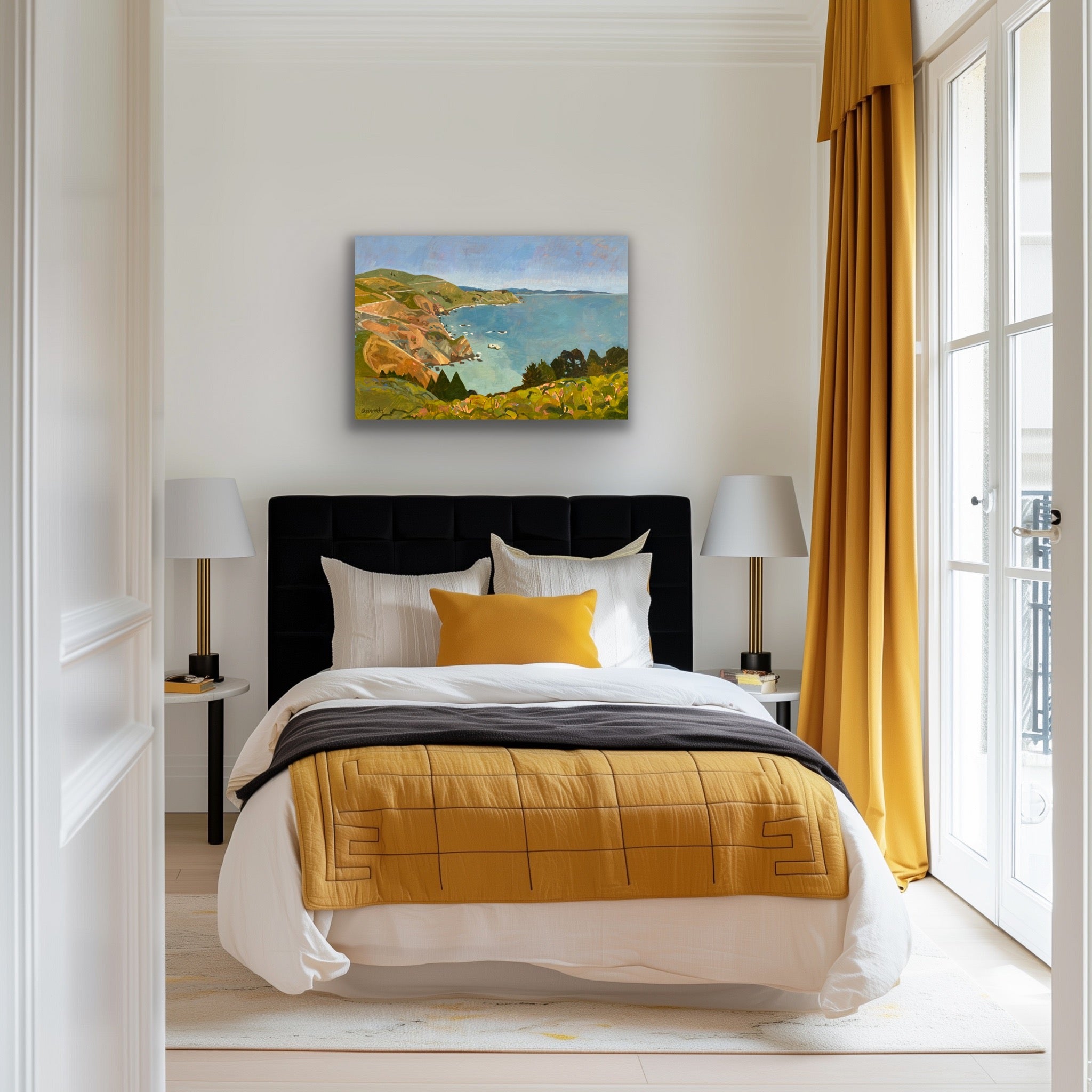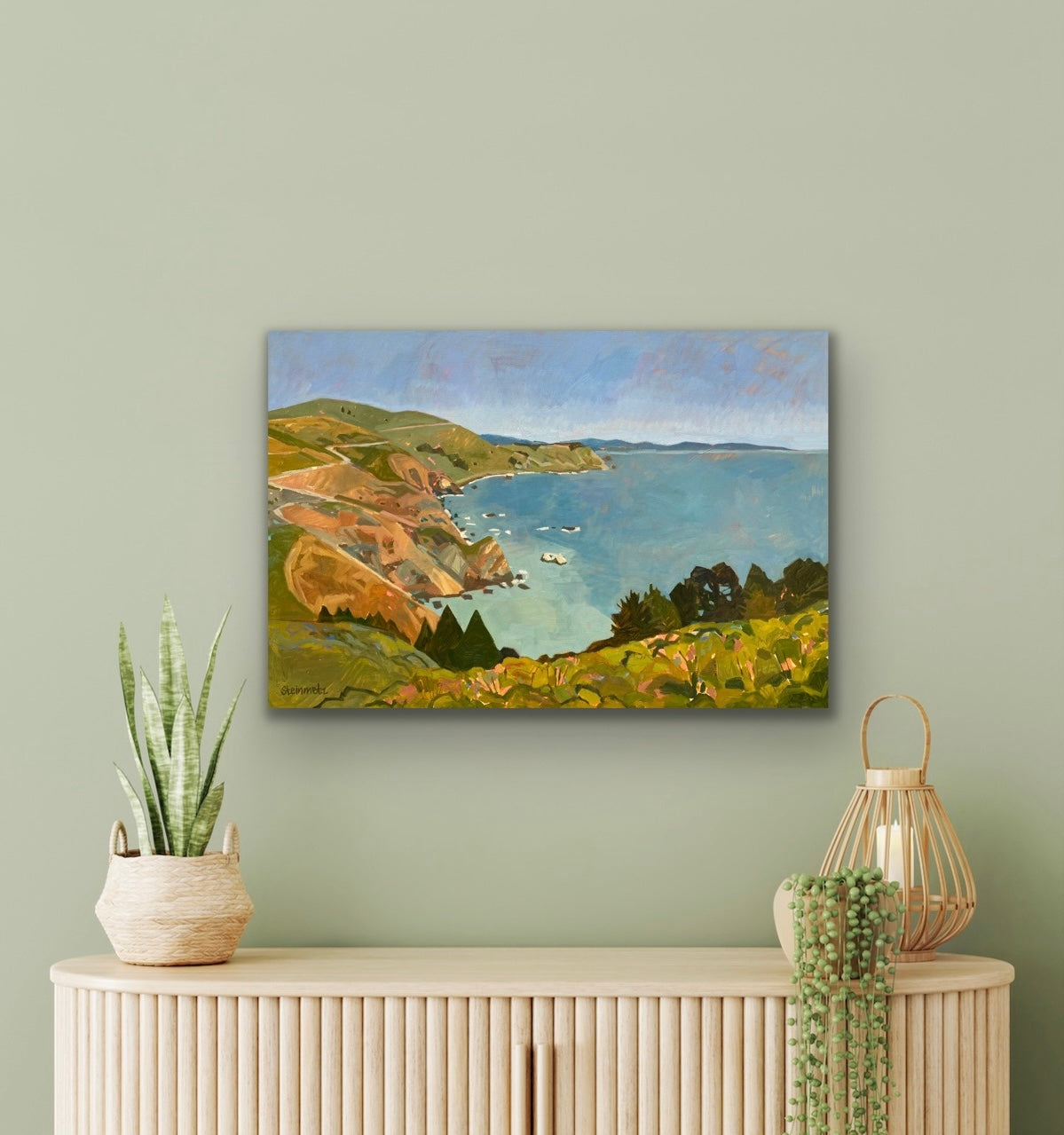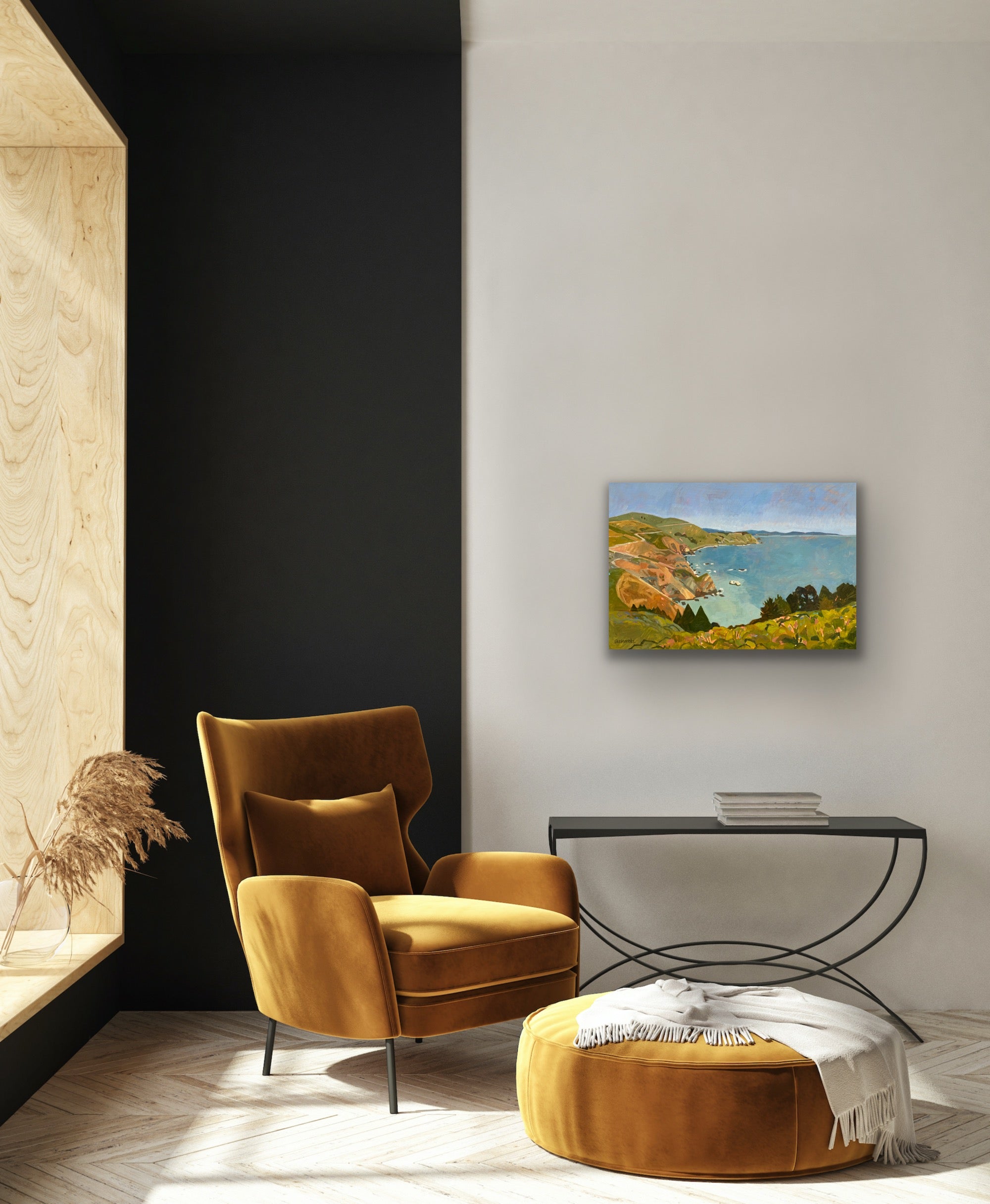Original Oil Landscape Painting of Coast in-betweeen Muir and Stinson Beach, San Francisco in the background, by Liana Steinmetz