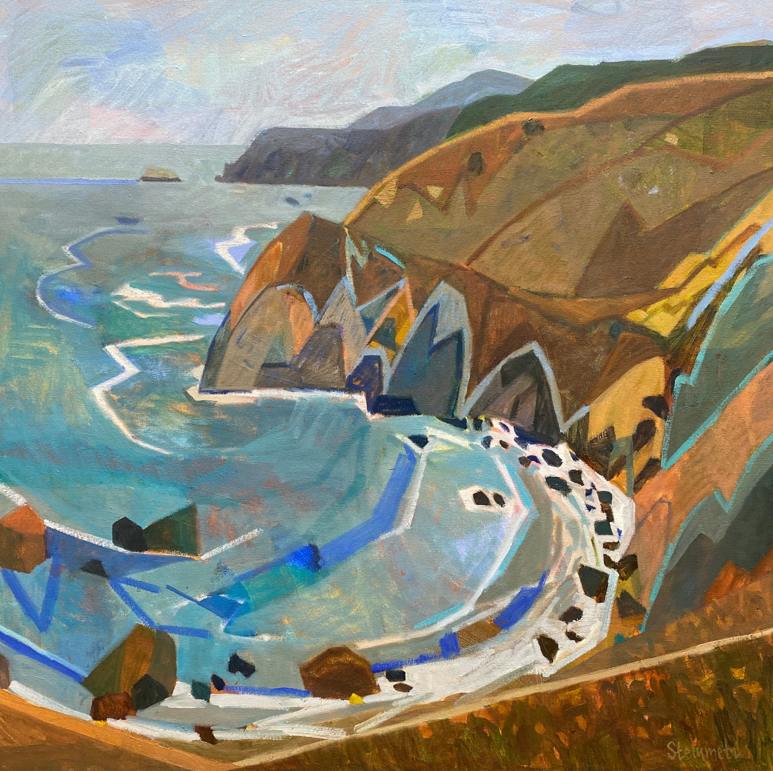 Original Oil Landscape of The Coast Between Muir Beach and Stinson Beach near Slide Ranch, by Liana Steinmetz