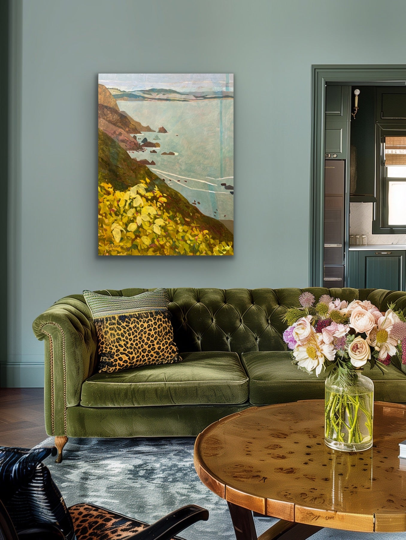 Original Oil Landscape Painting of Coast looking south along Highway One, between Stinson and Muir Beach, by Liana Steinmetz