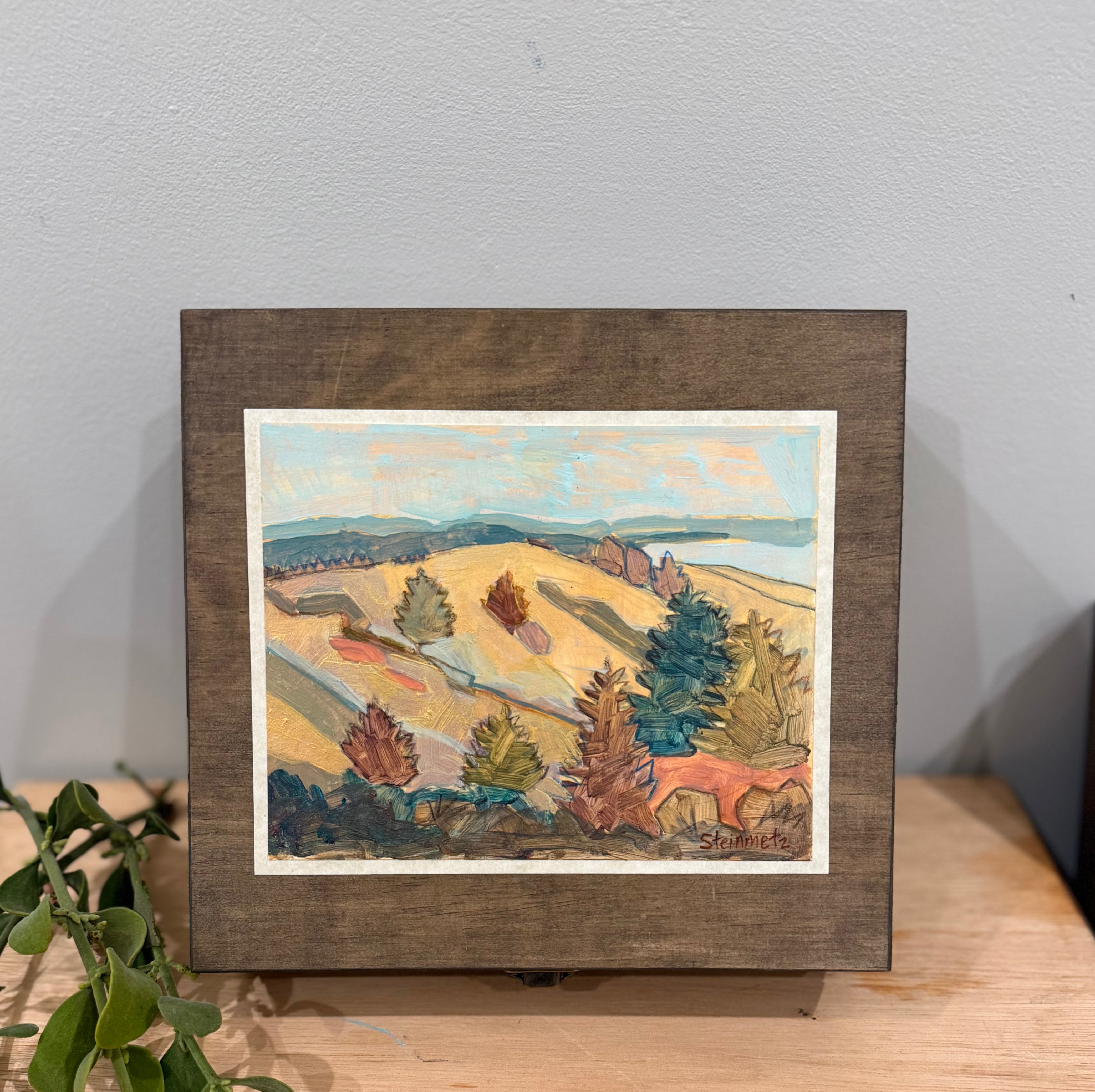PRODUCT DETAILS: Treasure Box adorned with original hand-painted landscape of Cardiac Hill from the Dipsea Trail on Mount Tamalpais in Marin County, California.