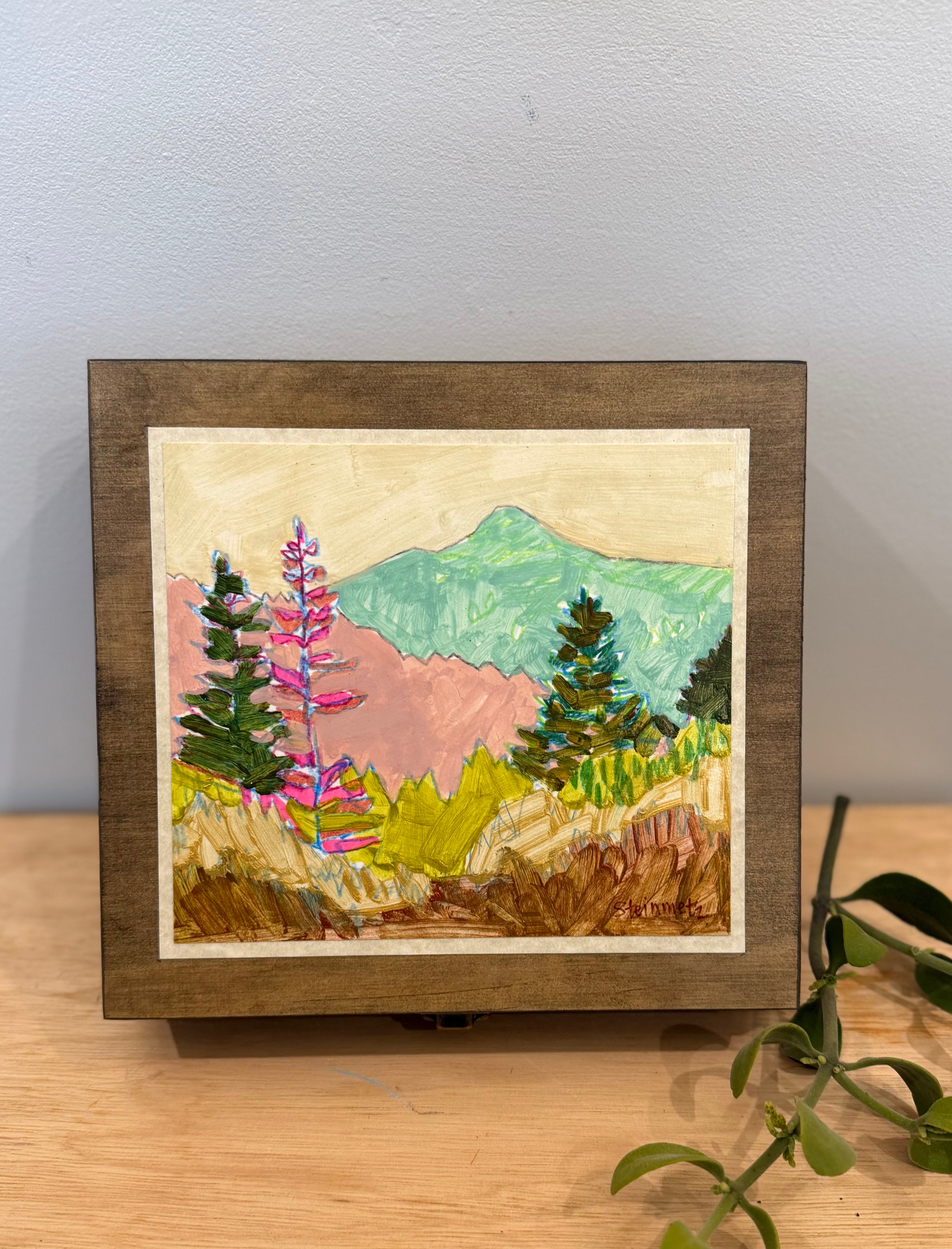 PRODUCT DETAILS:  Treasure Box adorned with original hand-painted landscape of Mount Tamalpais in Marin County, California.