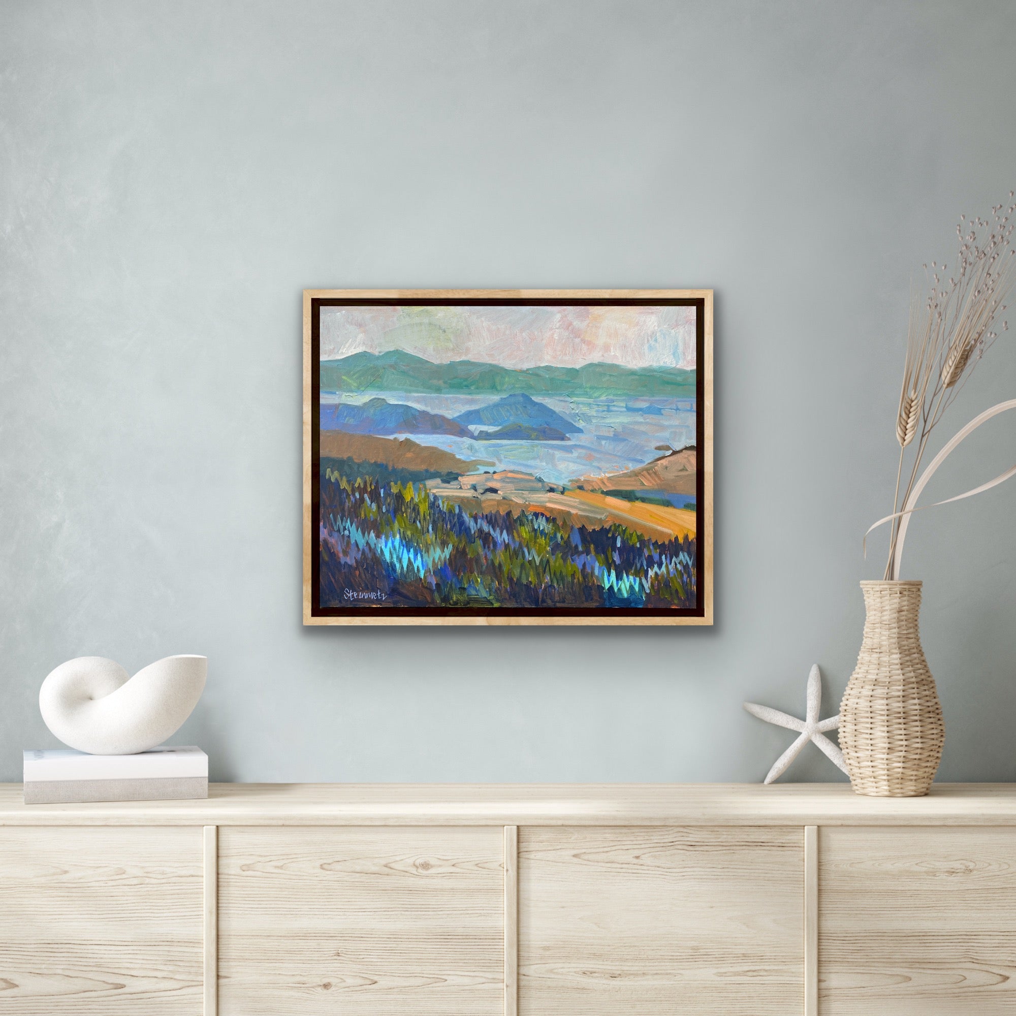 Original Oil Landscape Painting of Mill Valley, Angel Island, Tiburon and the East Bay from Trojan Point on Mount Tamalpais, California by Liana Steinmetz