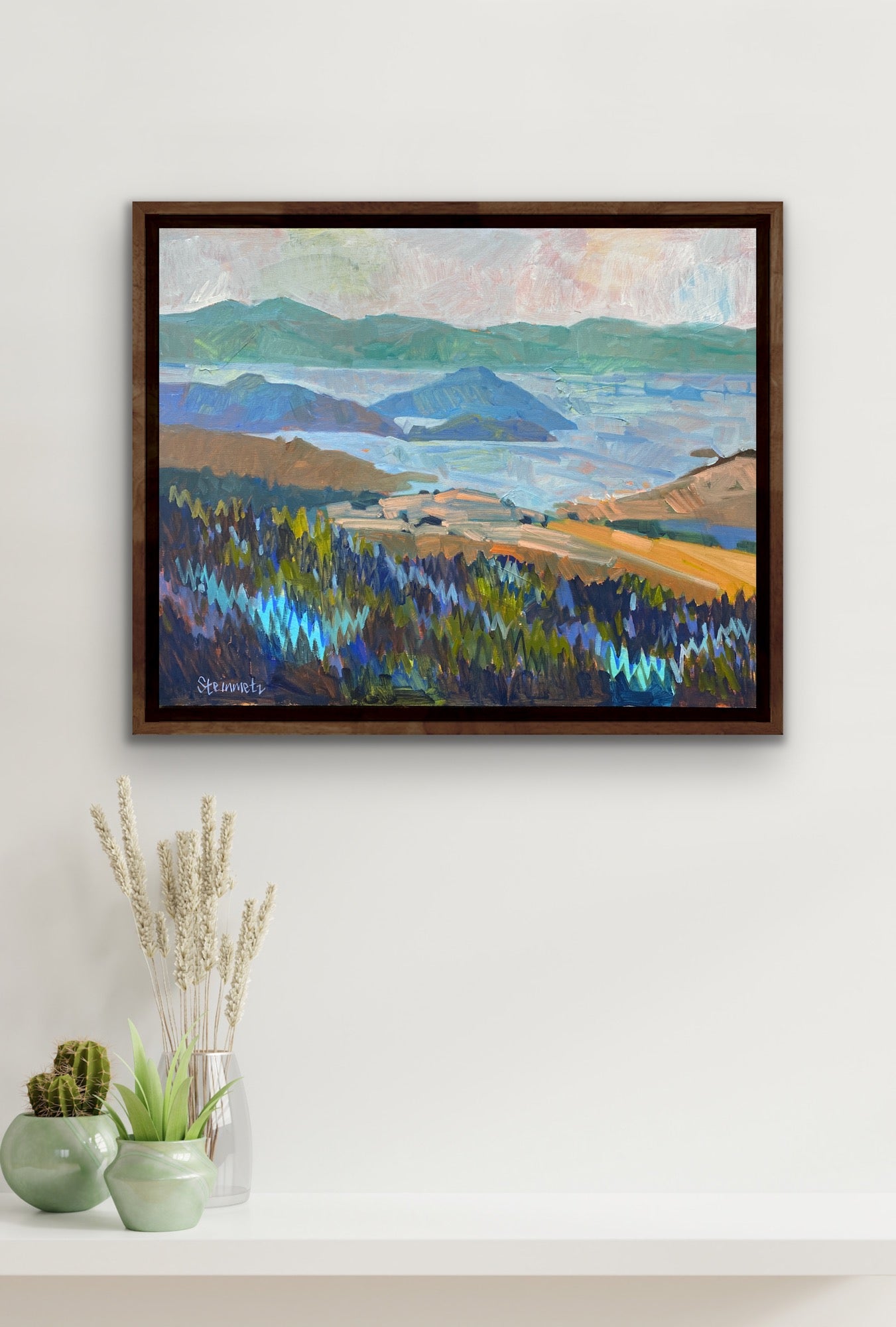 If you love this place, this painting becomes a love letter you can hang on your wall. It holds the familiar landmarks, the soft summer haze, the sense of quiet belonging that Mount Tam always seems to offer. Living with it brings the Bay’s beauty a little closer — a comforting reminder of home no matter where you are in your day.