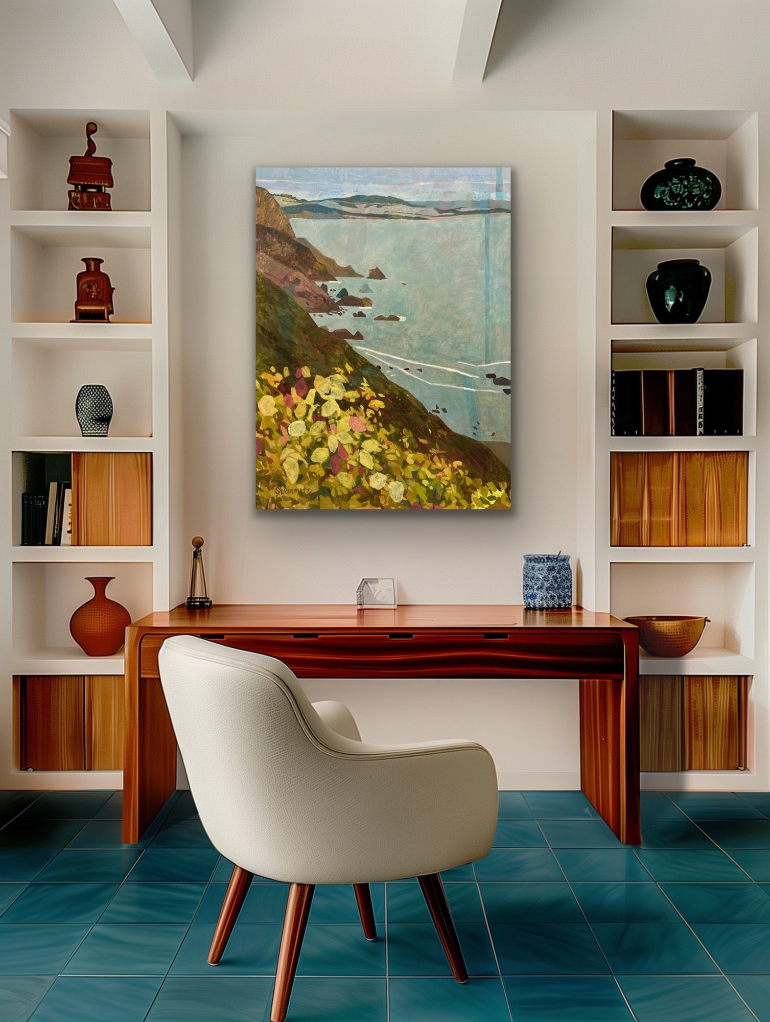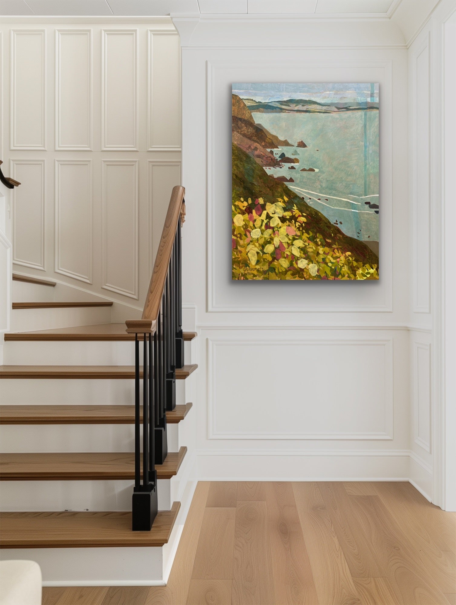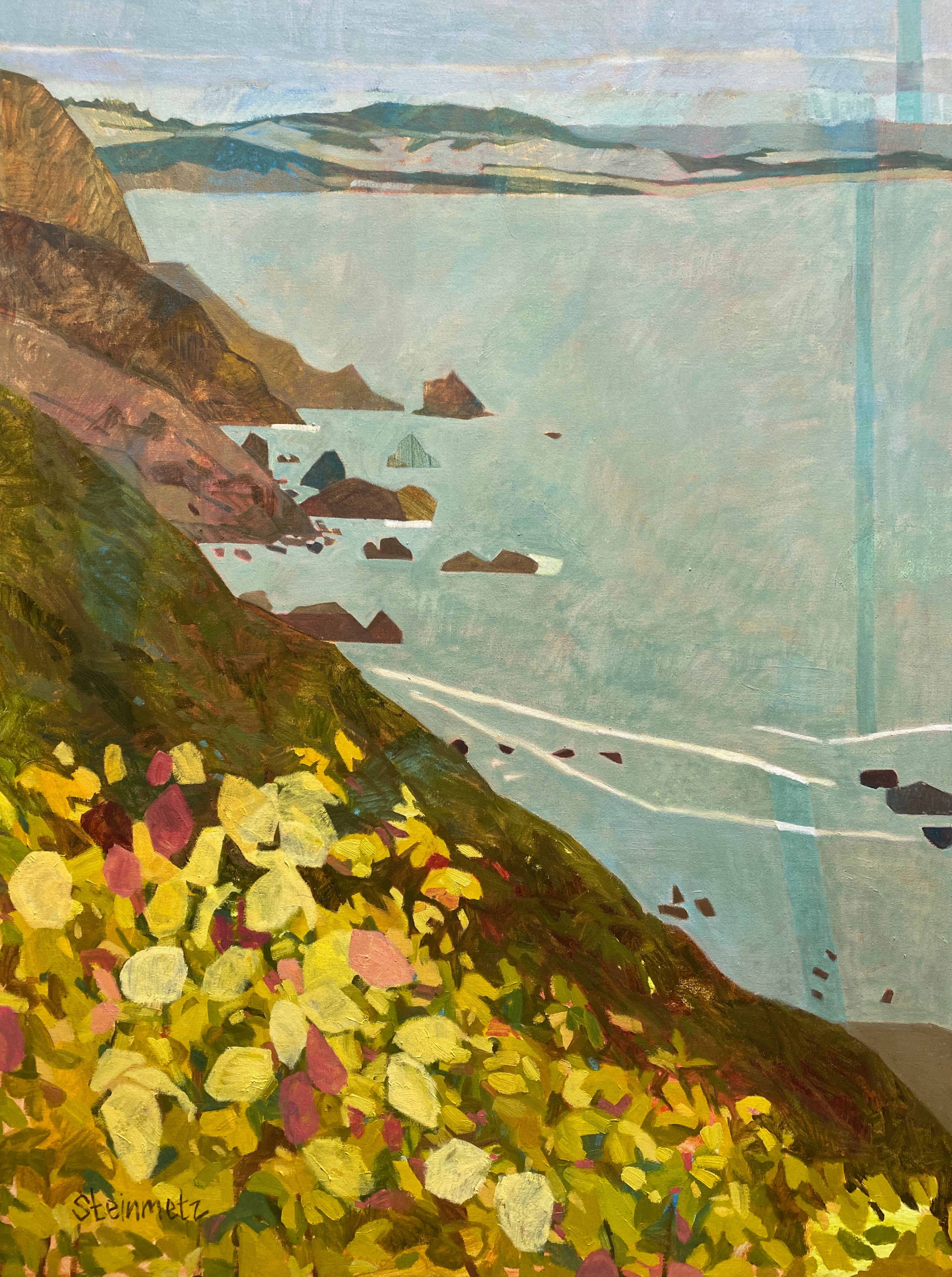 Original Oil Landscape Painting of Coast looking south along Highway One, between Stinson and Muir Beach, by Liana Steinmetz