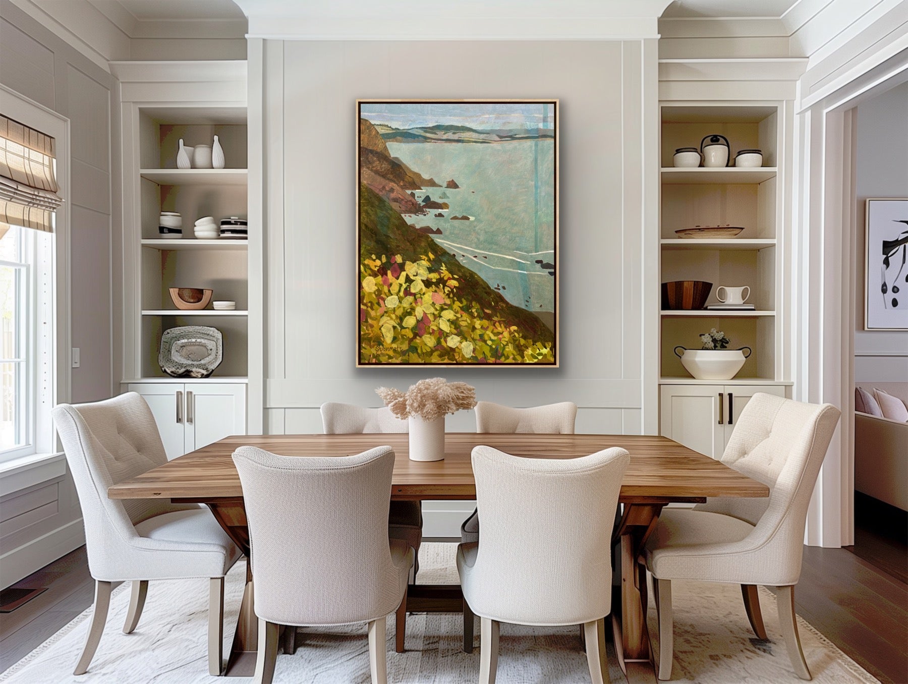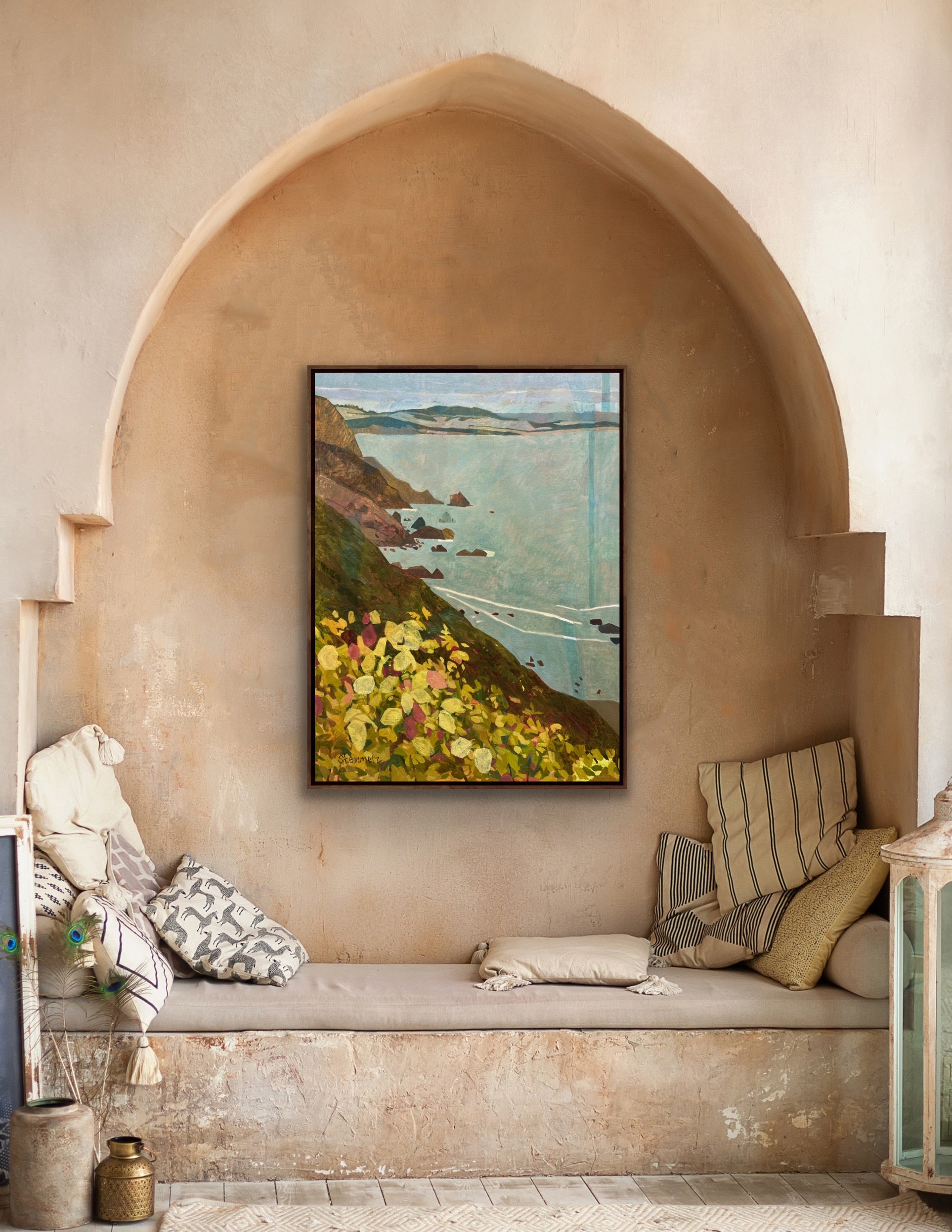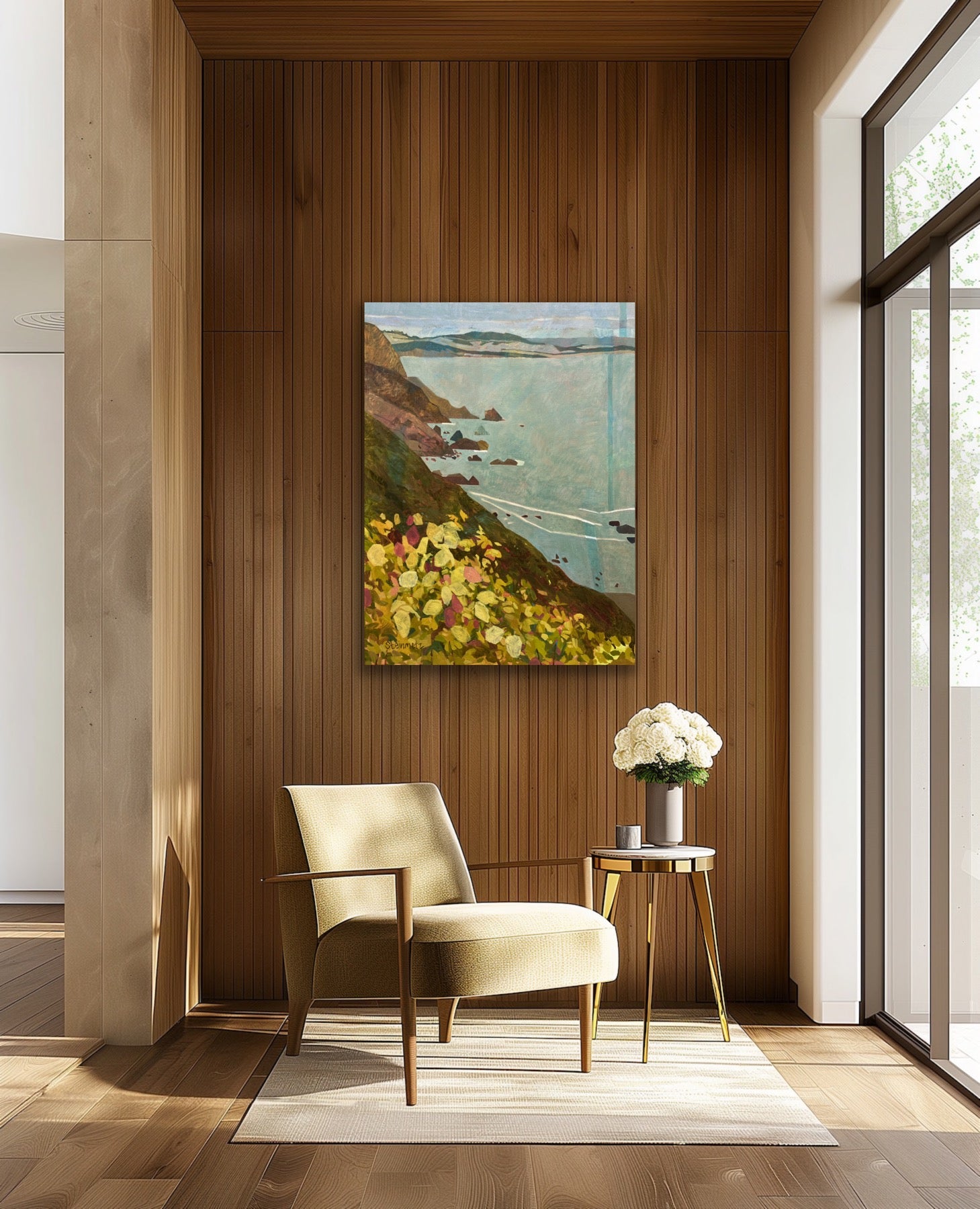 Original Oil Landscape Painting of Coast looking south along Highway One, between Stinson and Muir Beach, by Liana Steinmetz