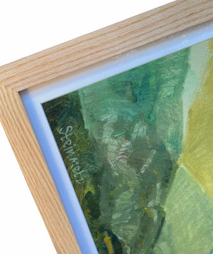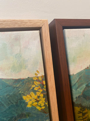Your choice of a walnut frame around 1.25 inch stretched canvas or an oak floating frame around 1.5 inch stretched canvas.